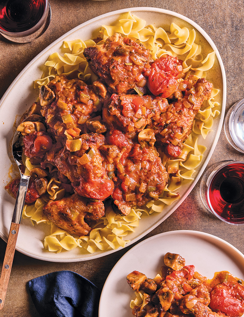 Tomato sauce gets a Creole twist at Tana in New Orleans, inspired by Chef Michael Gulotta's Sicilian heritage and upbringing in Louisiana. “We caramelize peppers and garlic in olive oil, add a touch of tomato paste and raw sugar and caramelize that as well, then we throw in a smoked pork hock and the canned tomatoes with some fresh basil and let simmer,” he says. “We also sneak in a spoonful of miso to add depth.” He serves this red gravy with braised meatballs and sourdough focaccia, as well as in a radiatore pasta with warm stracciatella and Calabrian chili crisp.