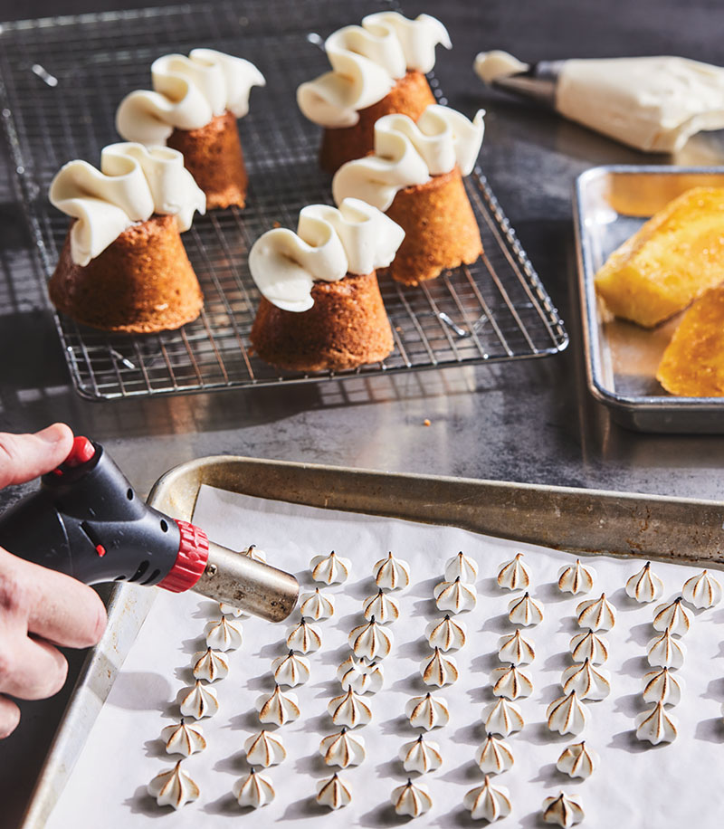 Try it: Collucci relies on his carrot cake in the spring, finishing it with accompaniments like coconut ice cream and braised pineapple prepped in advance.